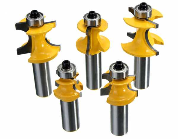 Используются при необходимости выбрать паз прямоугольной формы или четверть на ровной или изогнутой заготовке. Применяя двойной проход, получают шип нужного размера. Глубина выборки регулируется положением фрезеровочной машины или упорным подшипником.