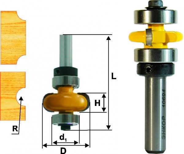 Прямое назначение фрезы – обработка кромок заготовок для получения полукруглого выступа. Также есть много дополнительных способов применения – к примеру, если обработать такой фрезой прямоугольную заготовку с двух сторон, то она станет стержнем. Кроме этого с ее помощью получают профили с фаской и кромкой сложной формы, а также шарнирные соединения (при обработке заготовки в паре с галтельной или калевочной фрезой).