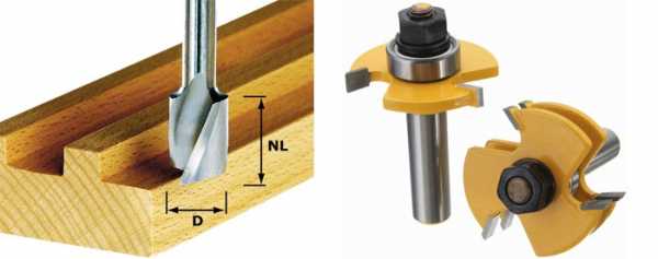 Эти фрезы оснащены режущими кромками как боковыми, так и торцевыми. При выборе пазов производят чистовую обработку дерева по всей геометрии профиля. В быту, к примеру, используются при подготовке панелей (формирование соединения «шип-паз»), изготовлении створок шкафов-купе, раздвижных дверей. Подразделяются на фрезы цилиндрические, для нарезки шипов (наиболее известная модификация – «ласточкин хвост») и ряд других.
