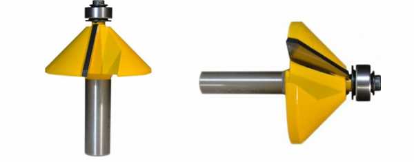 - Конусная. Фреза скашивает кромку под углом в 45 градусов.