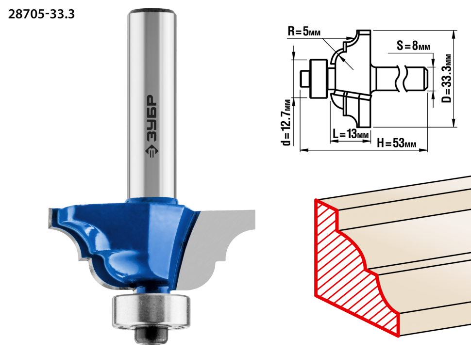 Группа кромочных фрез представляет собой практически идентичную конструкцию с торцевыми насадками, применяемыми для обработки металла. Они позволяют придать краям заготовки фигурный профиль. Их ножка имеет подшипник, который останавливает насадку при контакте с заготовкой, поэтому ограничивает углубление в древесину. Данная категория имеет самые разнообразные формы профиля и часто используется для декорирования столешницы. С их помощью можно делать фигурный вырез, выборку и создание сложной фаски.