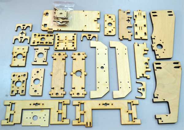 Ниже на фото показаны все детали конструктора – структура, кинематика и электроника.