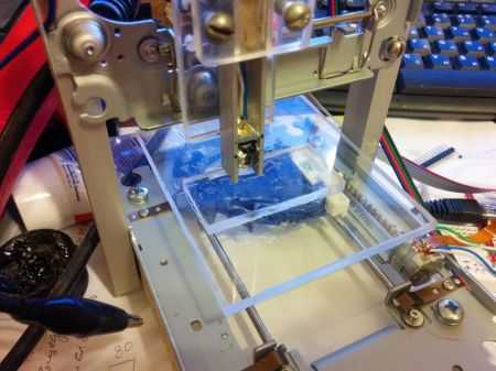 В этом случае следует отметить, что для сборки такого агрегата своими руками потребуется три отдельных двигателя шагового типа, а значит, придется искать и разбирать два матричных принтера.