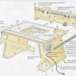 Материалы, которые требуются для изготовления агрегата своими руками, можно найти достаточно легко и стоят они совсем недорого. Именно поэтому самодельное фрезерное устройство стоит небольших денег. Использовать можно такой материал, как: ламинированная фанера, лист ДСП.Размеры будущего стола зависят от того, сколько свободного места будет в мастерской. Изготовление станка своими руками начинается с того, что берётся лист фанеры и разрезается на детали с помощью циркулярной пилы в соответствии с чертежом. Столешница и станина считаются неразъемными деталями, именно поэтому их изготавливают в первую очередь.