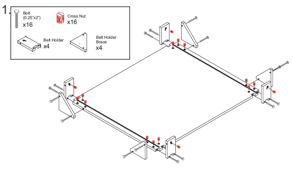 Установка опоры на нижнюю плоскость. Дополнительная фиксация ее к вертикальной стойке станины.