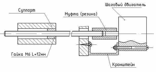 Оптимальным вариантом является изготовление двух кареток, которые будут двигаться по осям координат x; y. В качестве основания лучше всего использовать стальные шлифованные прутки. На них будут монтироваться каретки. Для создания трансмиссии необходимы шаговые электродвигатели и винты с подшипниками качения.