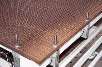 Присоски выставляются максимально приближенными к углам изделий, с учетом уже нанесенного рельефного рисунка. Траверсы равномерно фиксируется вдоль длинной стороны детали, присоски крепятся равномерно по краям. В программе обработки записана замена и позиционирование фрез. Выполнение программы для одной стороны заканчивается остановкой шпинделя и информацией на табло. Оператор переворачивает деталь и фиксирует ее. Запускает программу обработки второй стороны.