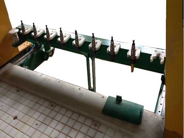 14. Стойка крепления сменного инструмента на 10 позиций и стакан фиксации цанги для смены фрезы, опция комплектуется по желанию.