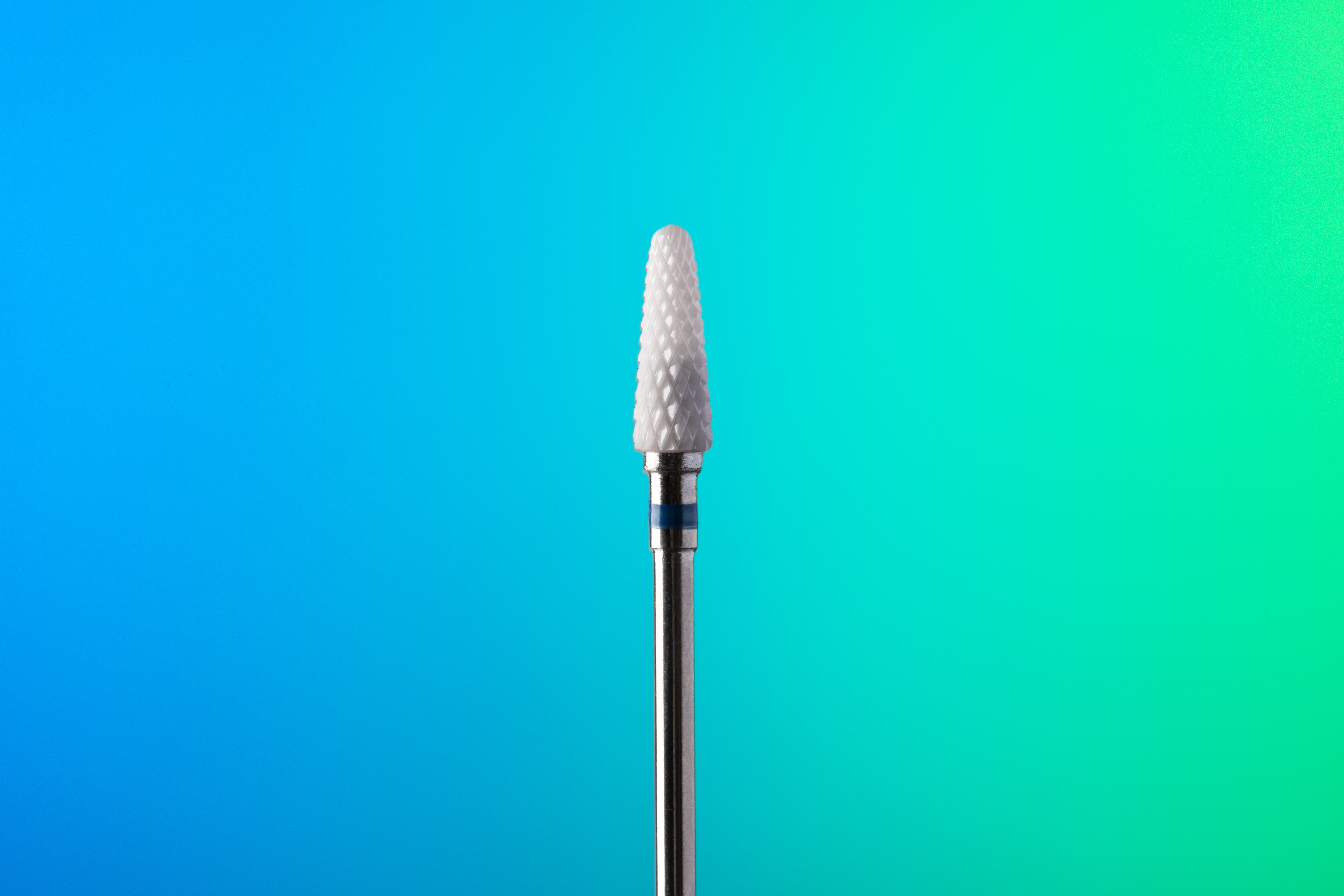 Керамические фрезы более мягкие, чем алмазные и твердосплавные. Мы рекомендуем начинающим мастерам и тем, кто только осваивает аппаратный маникюр, учиться именно на керамических фрезах. Они менее травмоопасны и позволяют мастеру в спокойном режиме обработать ногтевую пластину, боковые валики и бережно удалить сухую часть кутикулы.
