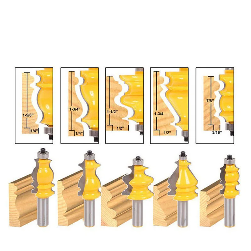 Инструмент сильно различается типом конфигураций, назначению. До начала производимых действий с деревом, необходимо определить тип и виды, используемых для заготовок. Единица измерения хвостика исчисляется в миллиметрах либо дюймах, в зависимости от типа используемого фрезера. Распространенными вариантами являются виды фрез диаметром от 6 до 12 мм. Стоит сконцентрировать внимание, что использование дюймовой цанги и миллиметрового хвостика недопустимо, так как это может вызвать поломку оборудования, либо травматизму.