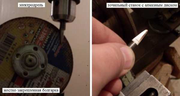 Для подрезки стержня можно приспособить болгарку и дрель, а формирование рабочей части выполнить на заточном станке