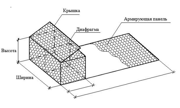 Устройство диафрагм упрочняет конструкцию габионов, облегчает работы по их установке и способствует удобству эксплуатационных работ.