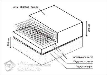 В основном для строительства гаража основанием служит бетонная плита, залитая по монолитной технологии.