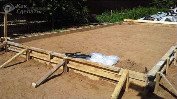 Первым делом что необходимо сделать – очистить строительную площадку. На месте будущей конструкции снимаете грунт до 10 см в глубину. Дно котлована засыпается песком, выравнивается и трамбуется.