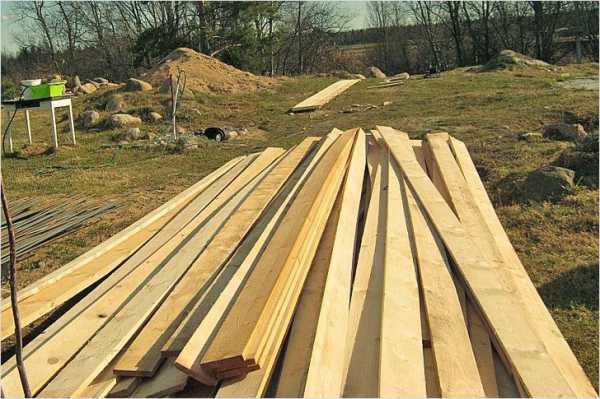 Перед началом строительства следует заранее подготовить все необходимые детали и элементы. Так, брус или доски для каркаса распиливаются до нужных размеров и раскладываются на участке. Их следует обработать различными пропитками для защиты от влаги, грибков,жучков и огня. Наиболее оптимальным материалом для строительства являются доски 50х100 мм. Для вертикальных стоек следует использовать деревянный брус 100х100.