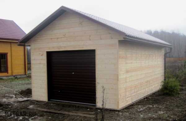 Гараж 15 х 7 м, деревянный блок хаус и секционные ворота