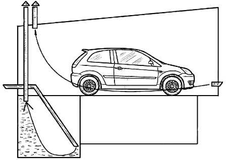 - Пол под наклоном и стоки по периметру — при таком обустройстве удобно мыть пол из шланга, и «купать» машину, не выгоняя ее из помещения.