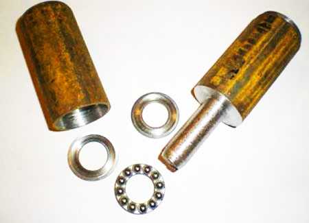 В глухую втулку вставляется шарик от подшипника и одевается на ось.