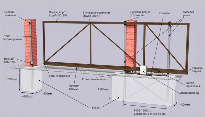 Откатные автоматические ворота с дистанционным управлением состоят из следующих частей: