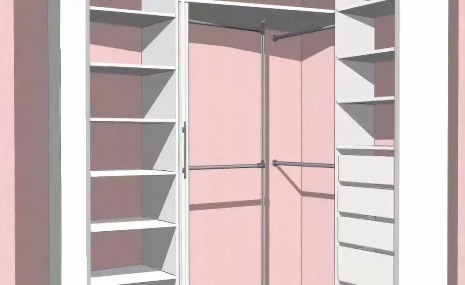 Первый напоминает шкаф купе – при открытии дверей в гардеробную на вас «смотрят» сразу все полки с одеждой и внутрь помещения зайти может быть проблематично. Второй вариант – это расположение двери с узкого торца гардеробной. Минимальная ширина помещения в этом случае – 1,2 м, чего будет достаточно, чтобы обеспечить пространство для передвижения по гардеробной и примерки вещей, а также места хранения шириной 55-60 см. Это отличный вариант для небольших квартир, который позволяет удобно расположить вещи, иметь к ним нормальный доступ и даже переодеваться в гардеробной; - угловые, когда перегородкой или дверьми отделяется угол помещения, а системы хранения располагают вдоль двух смежных стен, образующих угол. Неплохой вариант, но для получения гардеробной, в которой можно развернуться, придется отнять от комнаты приличную часть угла;