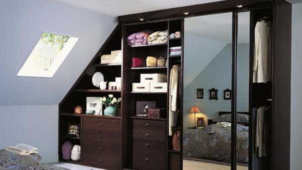 Обустраивая мансардное помещение под зону для хранения одежды, необходимо учесть высоту скатов кровли. Если она ниже, чем 1,5 м, нет смысла здесь делать гардеробную комнату.