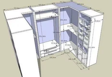 Ниже приведены некоторые стандартные размеры для различных типов гардеробных, как указано выше: