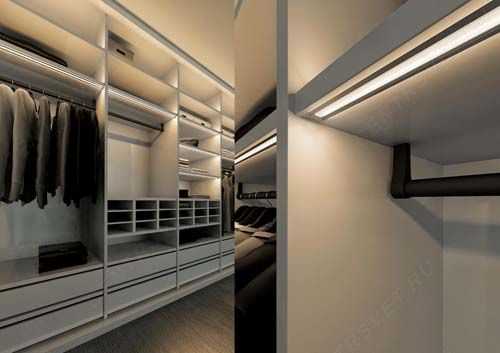 Варианты гардеробных в хрущевкеПравильное освещение гардеробной комнаты