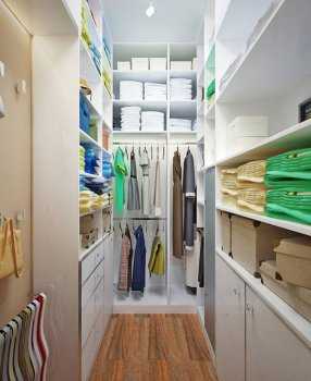 Архитекторы прошлого века при проектировании районов массовой застройки предусматривали в малогабаритных квартирах небольшую кладовку. Дизайнеры предлагают переоборудовать ее в гардеробную комнату маленького размера. Это наиболее удачный вариант для устройства целой комнаты для хранения вещей.
