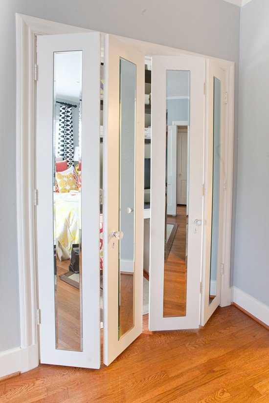Размеры комнаты, бюджет планировки и дизайн помещения – определяющие факторы при выборе конструкции дверей. Различные способы внутреннего оформления гардеробной представлены на фото: