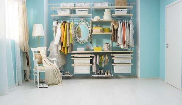 - для небольшой гардеробной комната лучше предпочесть для хранения вещей модульные системы. При необходимости отдельные детали такой конструкции могут меняться местами, переставляя модули;