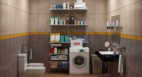 - сетчатые модули состоят из прикрученного к стене металлического несущего рельса и прочно прикрепленных к нему направляющих с кронштейнами, на которые крепятся корзины, вешалки и полки;