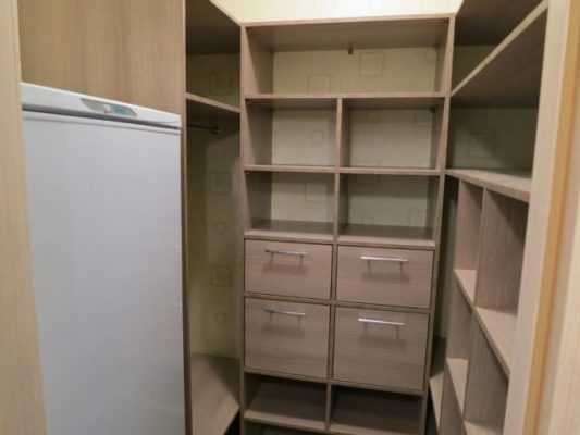 Если вы стали счастливым обладателем квартиры, где кладовка расположена в спальне или на кухне, то, скорее всего, она имеет достаточно внушительные размеры. Систему хранения в такую кладовку необязательно делать своими руками, вы можете заказать готовую мебель в специализированных магазинах.