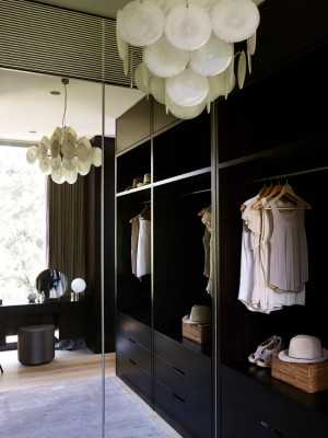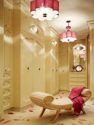 Не забывайте, что каждая деталь гардероба должна быть освещена. Идеально подходят для этой комнаты прожекторы или небольшая люстра, если ваш гардероб большой. Для маленьких помещений более рациональны будут точечные светильники.