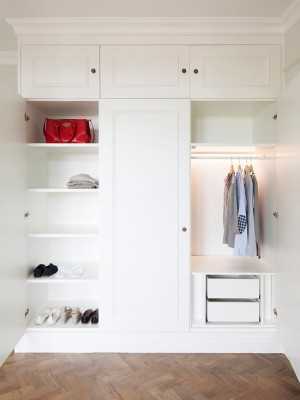 «Если помещение под гардеробную, переделанное из кладовки, имеет маленькую площадь, лучше всего использовать навесные конструкции и не загромождать место объемными шкафами»