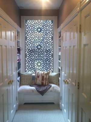 Между тем, вопросу дверей в гардеробной, получившейся из кладовки, необходимо уделить особое внимание. В зависимости от ширины проема, следует устанавливать либо купе, либо распашную створку. Кроме того, если стенка, которая соединяет спальную комнату и будущий гардероб, не несущая, то ширину проема для двери можно увеличить, что позволит увеличить количество вариантов установки дверей. Довольно интересным решением является обустройство тремя зеркальными панелями, где движется только средняя. Таким образом, в закрытом состоянии образовывается красивая зеркальная поверхность. Эту же конструкцию можно оформить в различных стилях, например, с элементами японского дизайна. Оригинальный эффект можно получить в случае, если вне зависимости от положения створок рисунок не будет терять свою целостную картинку.