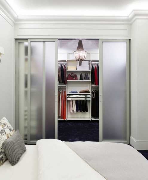 Нужно учитывать, что гардеробная в маленькой комнате уместна тогда, когда в ней хранят абсолютно все вещи, даже нижнее белье. В таком случае целесообразнее делать выход непосредственно в комнату, учитывая, что стандартные распашные двери занимают много места, а вот раздвижные позволяют экономить пространство.