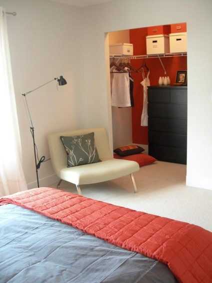 Очень удобен вариант, когда кладовка располагается рядом со спальней (через стену). Если стена не несущая, то можно сделать в ней дверной проем, а вход со стороны прихожей либо закрыть, либо оставить, разделив помещение на две небольшие комнатки.