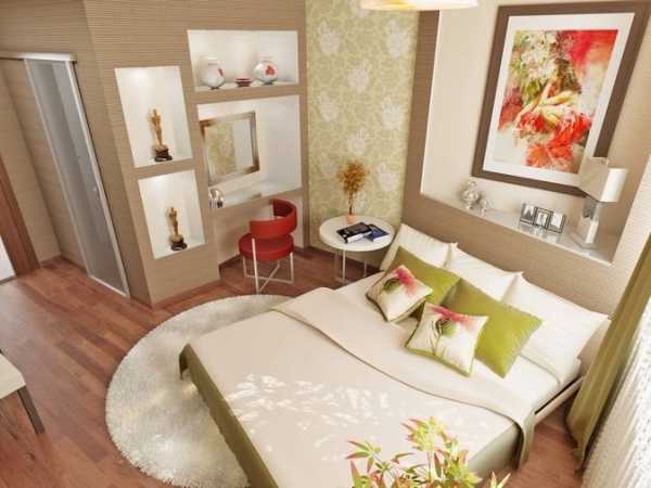 Если перед началом проведения ремонта комната имела прямоугольную форму, то ее форму можно изменить при помощи перегородки, в которую поместится шкаф. Дполнить дизайн можно раздвижными створками или зеркальными панелями.
