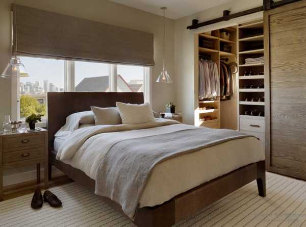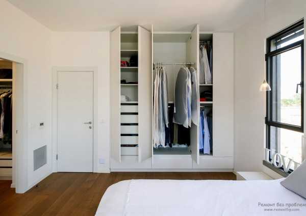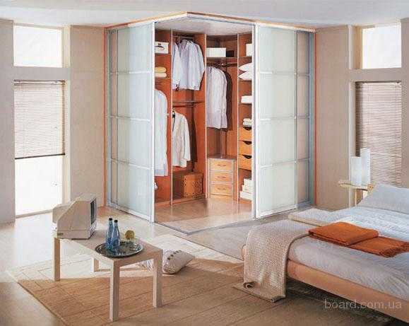 Фото гардеробной в спальне, для обустройства такой комнаты потребуется место 2-3*3 м