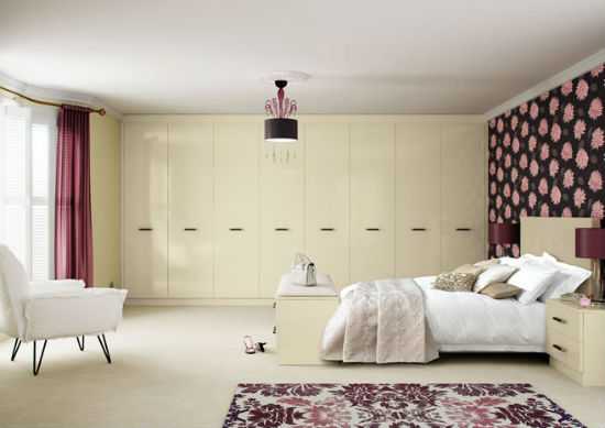 Местом размещения гардеробной может быть ниша, находящаяся в спальне. Или же ее можно расположить вдоль самой длинной стены. А можно организовать угловую гардеробную в одном из углов комнаты таким образом, чтобы спинка кровати упиралась в одну из ее стен. Для этого кровать устанавливается по диагонали, за счет этого высвобождается угол. При данном варианте хорошо экономится пространство.