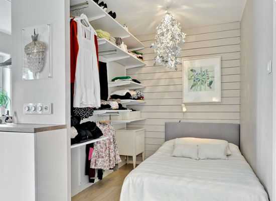 Гораздо сложнее выбрать место, когда комната маленькая, в ней все необходимые вещи расфасованы по шкафам, занимающим пространство. В такой ситуации лучшим решением будет создание угловой гардеробной.