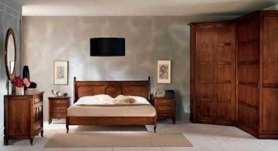 Если спальня выполнена в роскошном классическом стиле, то дверь гардеробной должна быть выполнена из дорогих пород дерева. Это поможет подчеркнуть всю роскошь интерьера.