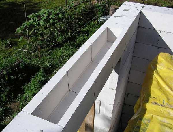Это пояс из корытообразных блоков (U элементов) и укладка арматуры в штробы газобетонной кладки: