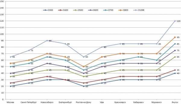 - Длительность холодного времени года и среднесуточный температурный режим напрямую оказывают влияние на мощность стен. Для сибирских районов это значение всегда выше.