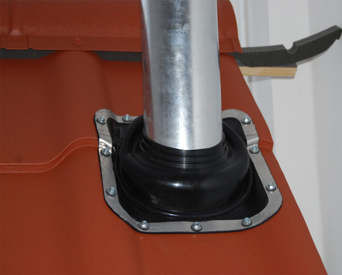 Существуют стандартные требования к гидроизоляции трубы на крыше из профнастила: