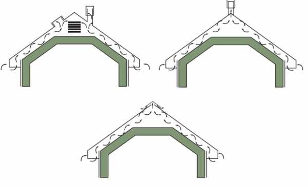 - выход воздуха из-под кровельного материала обеспечивается из-под конька либо с помощью вентиляционных труб;