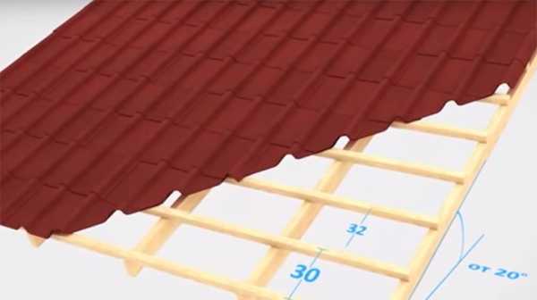 Чтобы правильно уложить гибкую черепицу, требуется использовать подкладочный материал. Покрытие из штучного битума рекомендуется использовать на скатной крыше, угол наклона которой не меньше 12˚. При угле уклона в 12–30˚, на всю поверхность готовой сплошной обрешетки закрепляется специальная влагоустойчивая подкладка. В случае когда угол наклона составляет больше 30˚, гидроизоляционный материал монтируется: