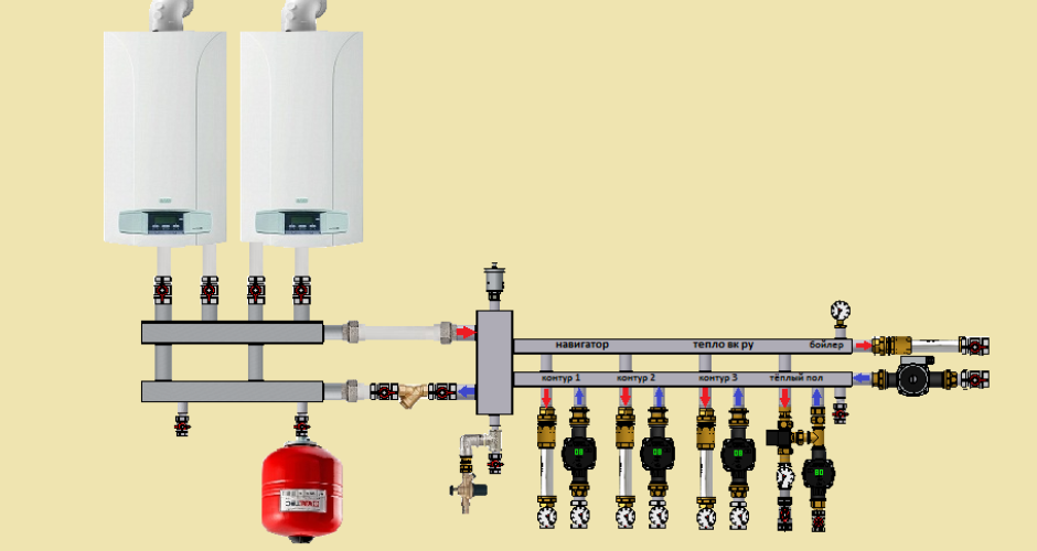 Современная система отопления на базе котла, собранная по лучевой схеме, с коллекторными узлами управления и распределения, чаще всего собирается из полимерных труб, а они очень чувствительны к перегреву теплоносителя и не выдерживают гидроударов (при закипании теплоносителя в котле).