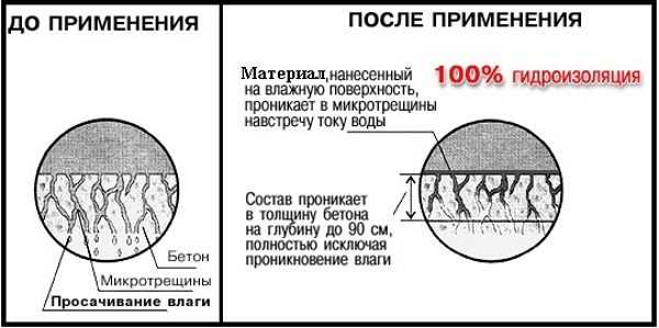Как известно, бетон способен накапливать влагу. Когда температура на градуснике опускается ниже нулевой отметки, проникшая в толщу вода расширяется в объеме до 9%. Тем самым осуществляет давление на стены изнутри. В результате этого возникают микроскопические трещины. Таким образом теплоизоляционные свойства здания ухудшаются. Обработка же такими составами помогает устранить влагу в бетоне. В результате потери тепла снижаются более чем