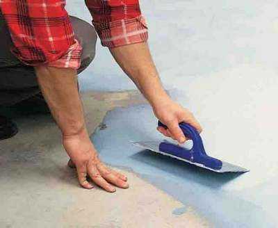 ΠΠΈΠ΄ΡΠΎΠΈΠ·ΠΎΠ»ΡΡΠΈΡ ΠΏΠΎΠ»Π° Π²Π°Π½Π½ΠΎΠΉ ΠΈΠ»ΠΈ Π΄ΡΡΠ³ΠΈΡ ΠΏΠΎΠΌΠ΅ΡΠ΅Π½ΠΈΠΉ Π½Π° ΠΊΠ»Π΅ΠΉ Π²ΡΠΏΠΎΠ»Π½ΡΠ΅ΡΡΡ, ΡΠ°ΠΊ ΠΆΠ΅ ΠΊΠ°ΠΊ ΠΈ Π½Π°ΠΏΠ»Π°Π²Π»ΡΠ΅ΠΌΠ°Ρ, Π½ΠΎ Π²ΠΌΠ΅ΡΡΠΎ ΠΏΠΎΠ΄ΠΏΠ»Π°Π²Π»Π΅Π½ΠΈΡ ΠΏΠΎΠ²Π΅ΡΡ Π½ΠΎΡΡΠΈ ΠΌΠ°ΡΠ΅ΡΠΈΠ°Π»Π° ΠΊΠ»Π΅ΡΡΠ΅ΠΉ ΠΌΠ°ΡΡΠΈΠΊΠΎΠΉ ΡΠΌΠ°Π·ΡΠ²Π°Π΅ΡΡΡ ΠΏΠΎΠ²Π΅ΡΡ Π½ΠΎΡΡΡ ΠΏΠΎΠ»Π°.